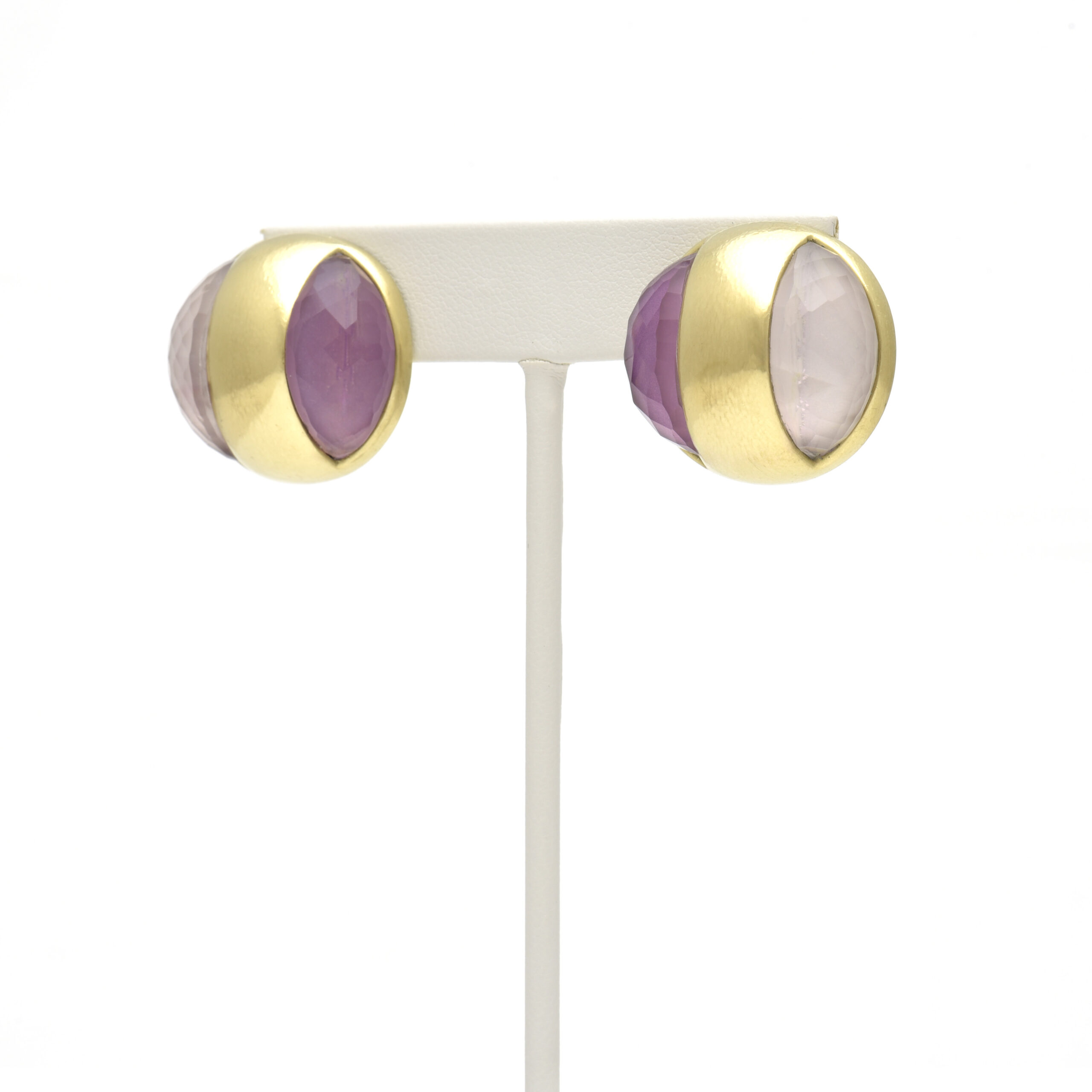 Three Oval Stones Button Earring