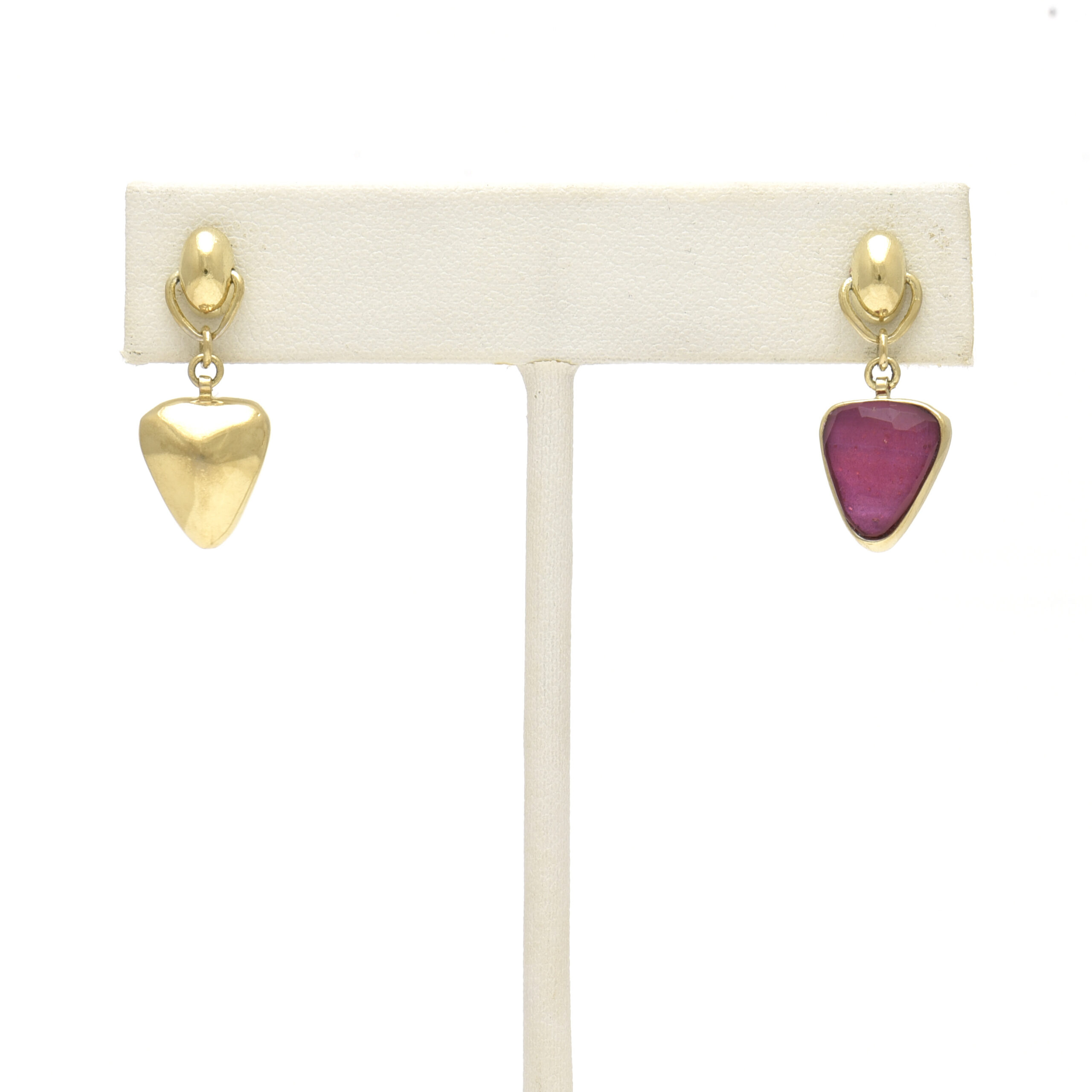 Soft Silver Triangle Reversible Teal Stone Drop on Hoop Top